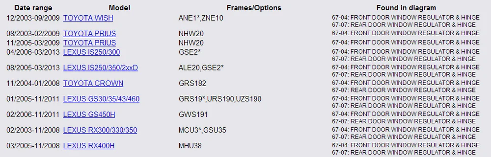| 85710-02170 | 85710-26010 | 85720-06200 | 85720-0E040 | 85720-58010 |