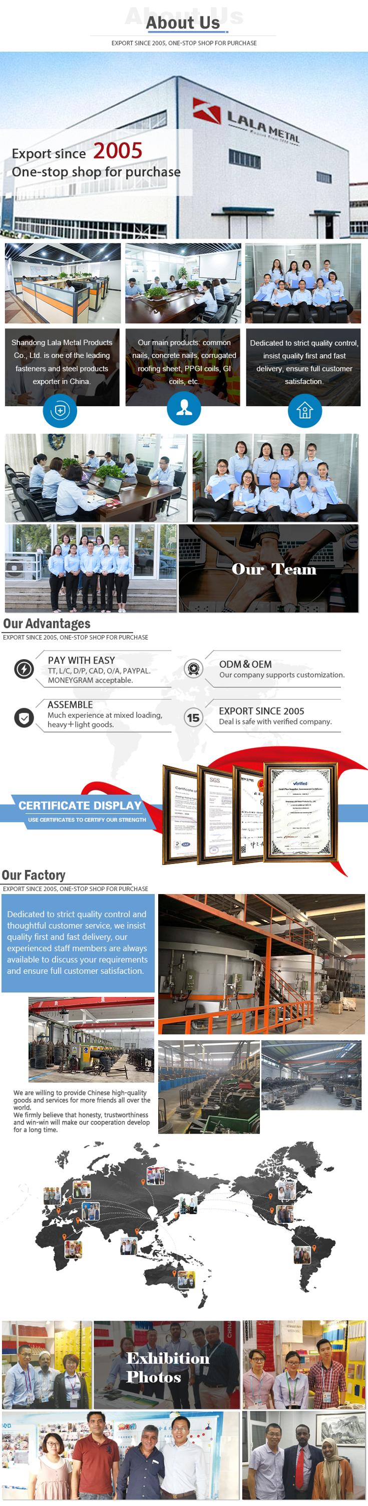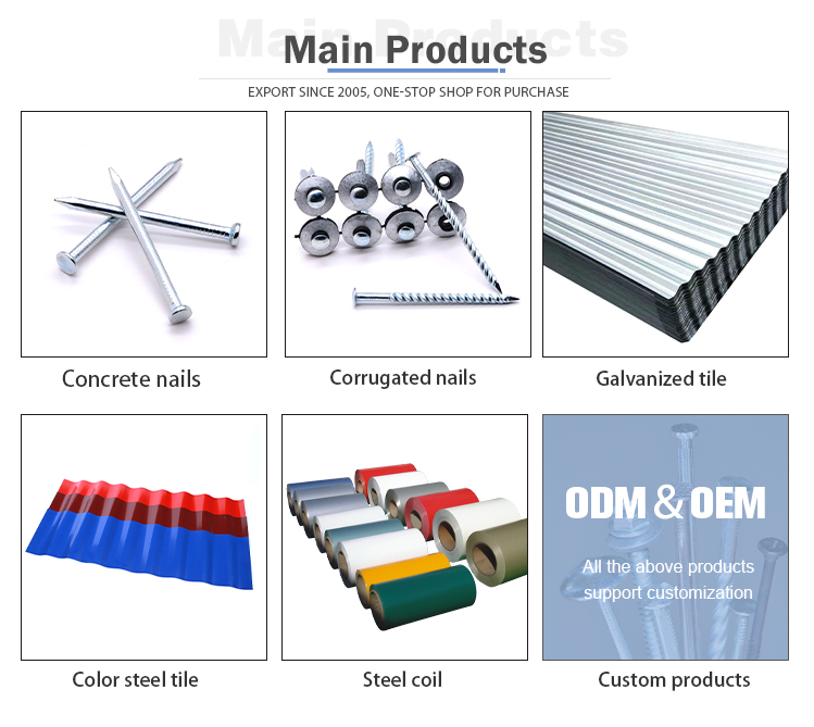 A5 : We have a 15-year nail factory and a 10-year roof panel factory,We also have a trading company that can supply many products. The best service and quality products are guaranteed, you can download our catalog at http://www.sinogrp.com/download/.