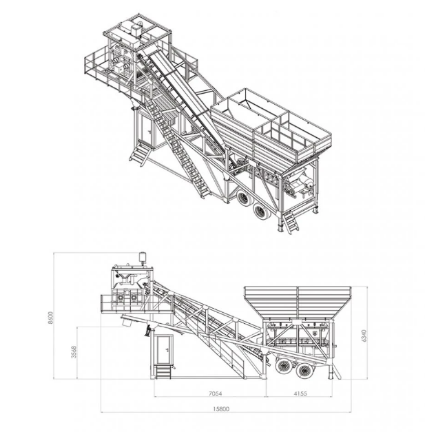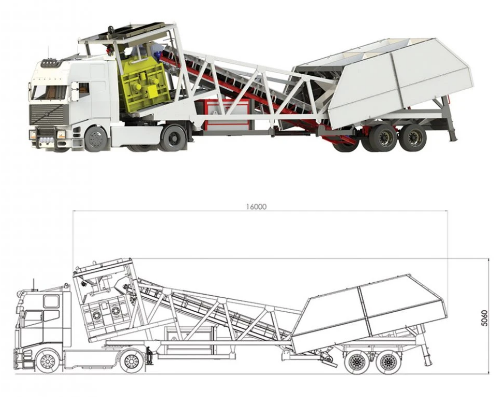 Our FASTMIX Mobile concrete plant produces compacted concrete at capacities ranging from 35 to 100 cubic meters per hour. The storage and weighing system consists of four cross hoppers. Pellets are conveyed using a herringbone belt conveyor. The cement silo is provided by a waterproof silo, equipped with dust filter, safety valve, liquid level indicator, aeration nozzle, etc.