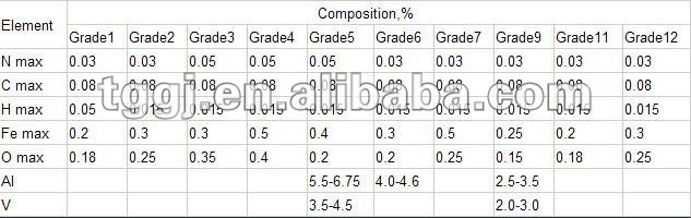 GR4 (Fe:0.5% max,C:0.08%max,N:0.05%max,H:0.015%max,O:0.4% max,Ti:balance) |