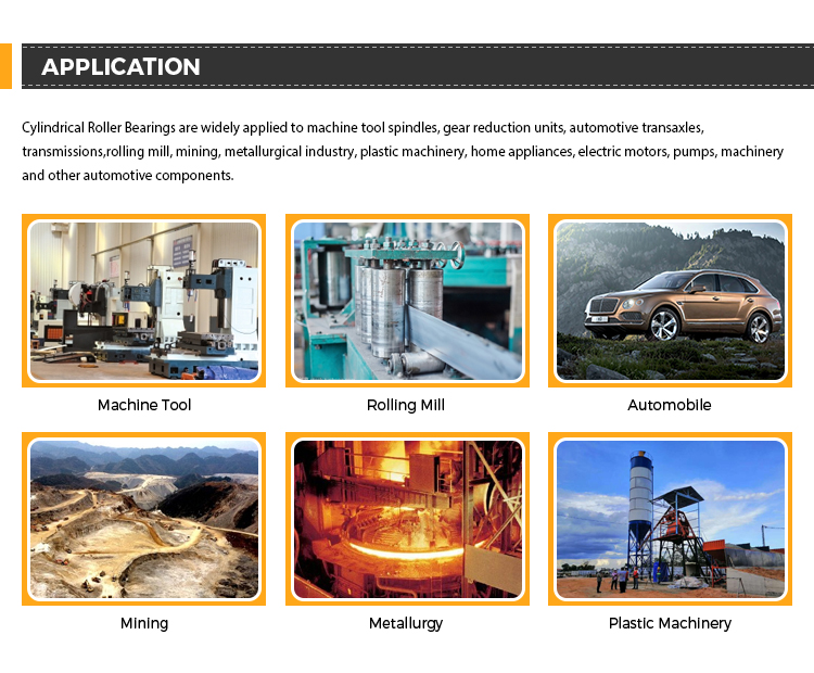 | product name: | Cylindrical Roller Bearings | application: | Automobiles. Tractors. Construction machinery. Rolling mills |