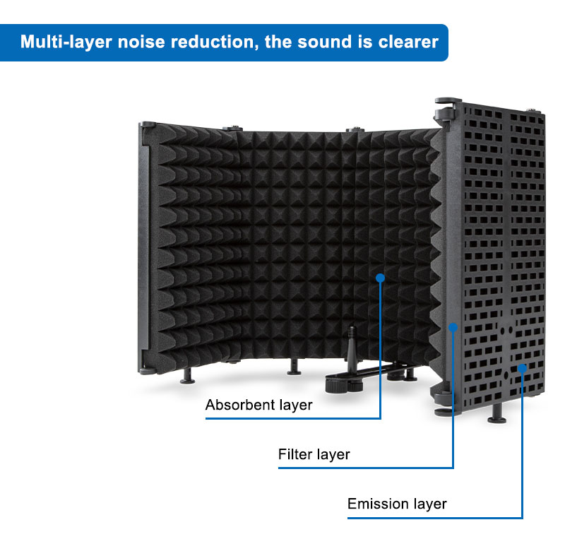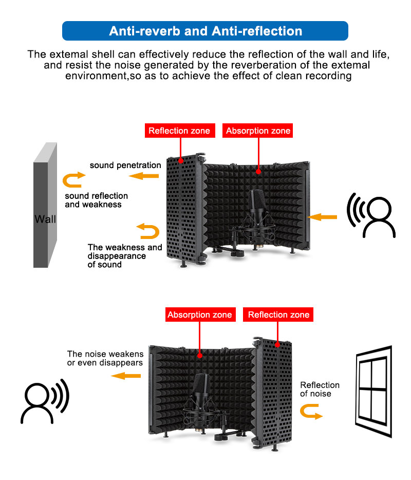 1. Sound insulation screen, reduce the impact of the room on the microphone recording.