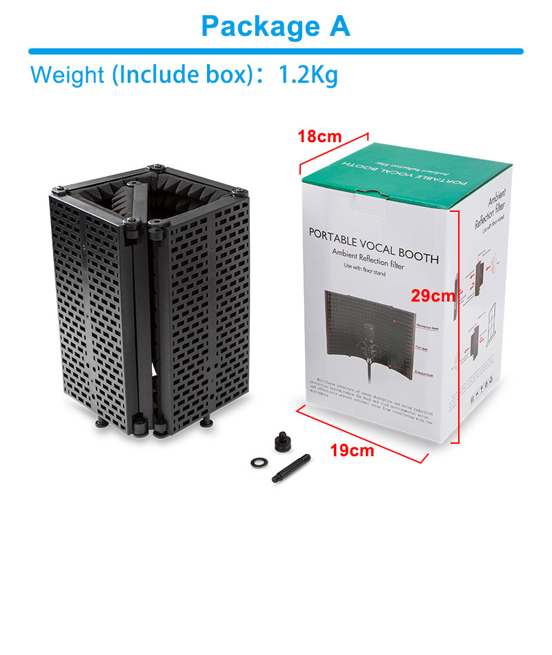 | product name: | microphone isolation cover | Packaging Details: | Comes with color box. Packing list: isolation cover*1 connecting rod*1 washer*1 connecting rod nut*1 |