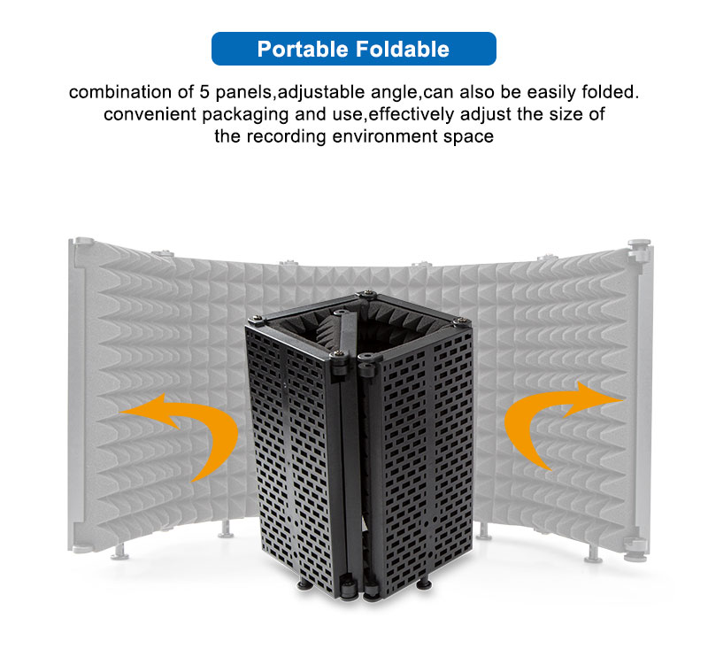Professional Microphone Isolator 5 Panel Foam Soundproof Screen Microphone Stand for Studio Recording