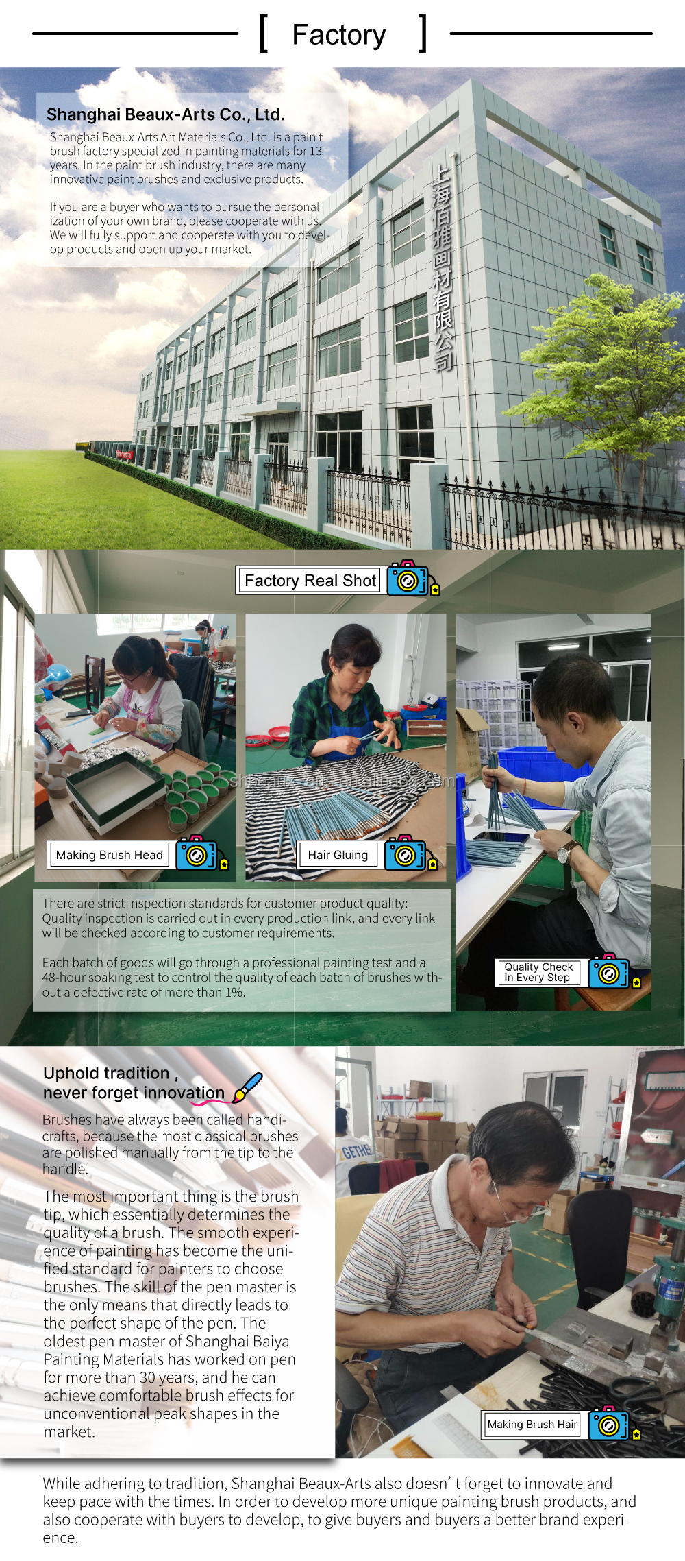 At Shanghai Academy of Fine Arts, we are committed to providing our clients with a wide range of high-performance and affordable artist brushes. With our rich industry experience and unremitting quality assurance management, Shanghai Meiyi is gradually becoming one of the major art suppliers and exporters in China.
