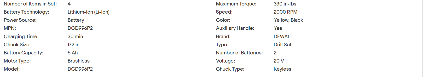 Provide original DEWALLT DCD996P2 20V MAX XR 1-2 3-SPD electric hammer driver KT W-2 BATTS (5AH) (GRACE INV LLC) brand new