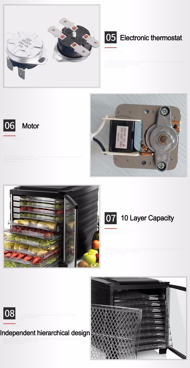Comes with 10 removable slide-out food trays or drying trays. These trays can also be used to dry food without using a dehydrator. Since the tray is removable, it is very easy to clean, including the dehydrator.