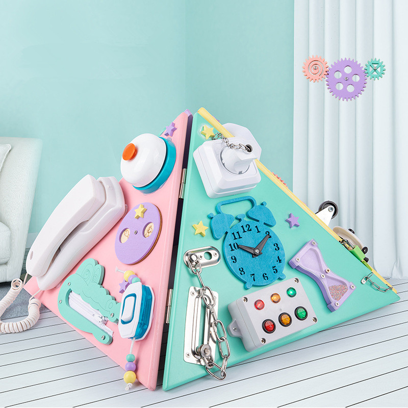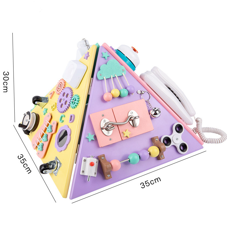 Pyramid BusyHouse Hands-on Ability Montessori Preschool Toy Multipurpose Toddler 4 Sided Wooden Busy Board