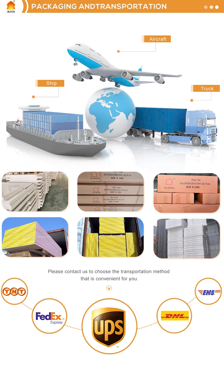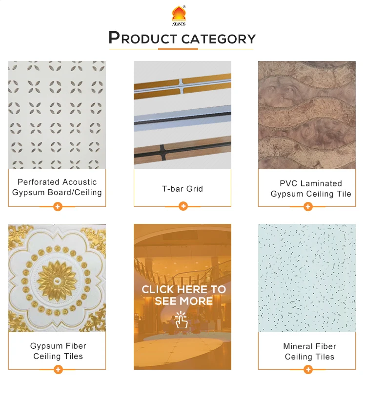 Gypsum flber ceiling, also known as calcium silicate board. is a porous material with good insulation. thermal insulation performance. When the indoor air is humid it can attract water molecules; when the air is dry, it can release water molecules to adjust the indoor humidity and increase comfort. Gypsum products are special fire-proof materials, which can absorb the heat in the flames and release water molecules at the same time to prevent the fire from spreading. and will not produce any toxic decomposition, erosion of, suffocating gas. It would not have any combustion or flue gas.