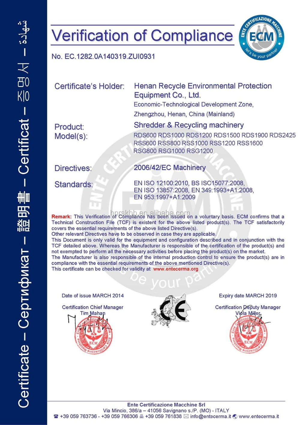 department, RECYCLEis able to take“Turn-Key” projects in China or abroad.