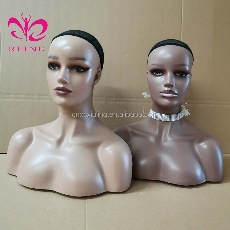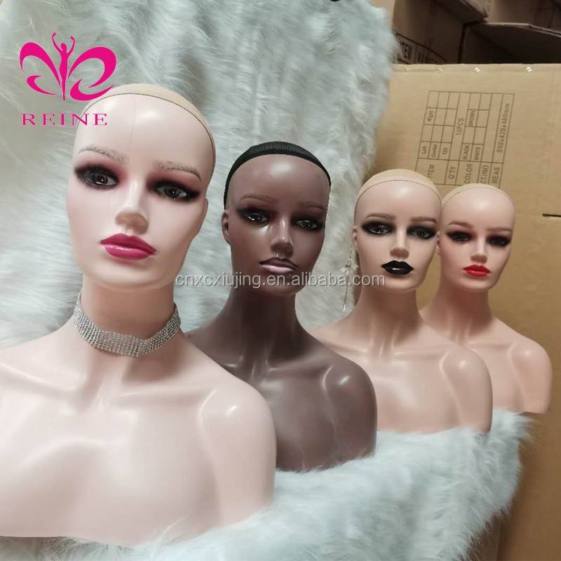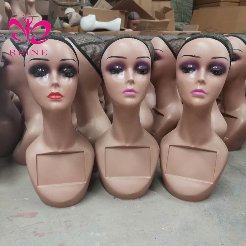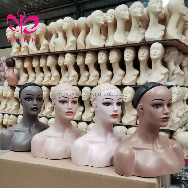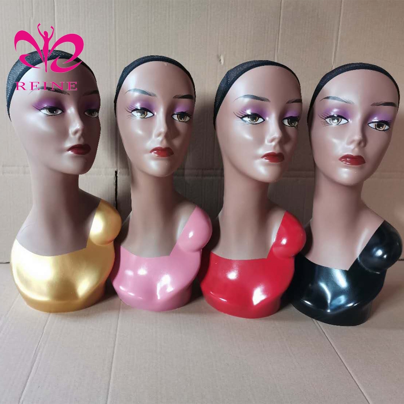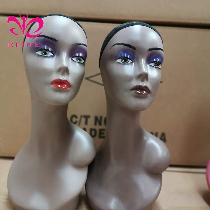REINE Realistic Mannequin Head with Shoulders PVC Mannequin Head with Shoulders for Wig Female Mannequin Head and Bust