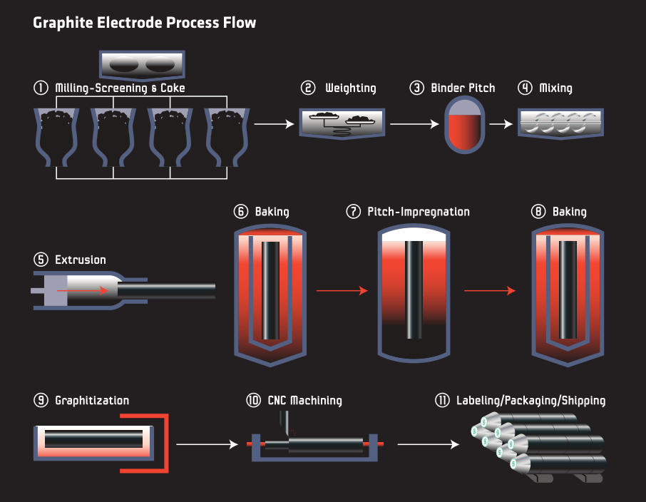 Graphite electrodes are widely used in electric arc furnaces to smelt steel, alloy steel and other metal or non-metallic materials.