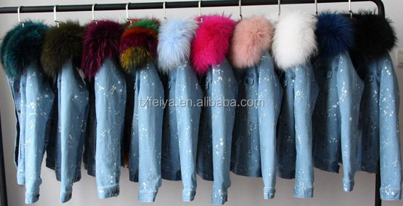 Model | Raccoon Fur Collar Coat and Genuine Rex Rabbit Fur Lining Removable Hooded Denim Denim Jacket Women's Parka |