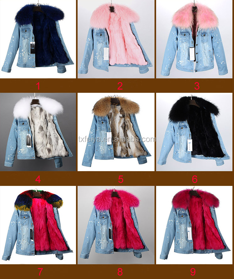 Raccoon Fur Collar Coat and Genuine Rex Rabbit Fur Lining Removable Hooded Denim Denim Jacket Women's Parka