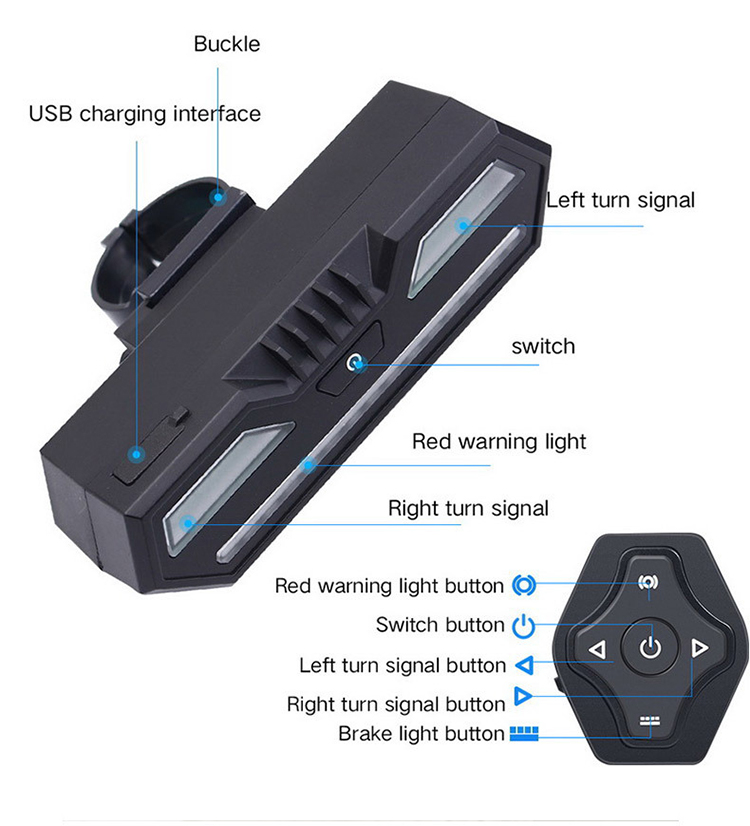 Rainproof intelligent remote control, super bright turn signal, rear light rechargeable mountain bike light CE FCC WHY