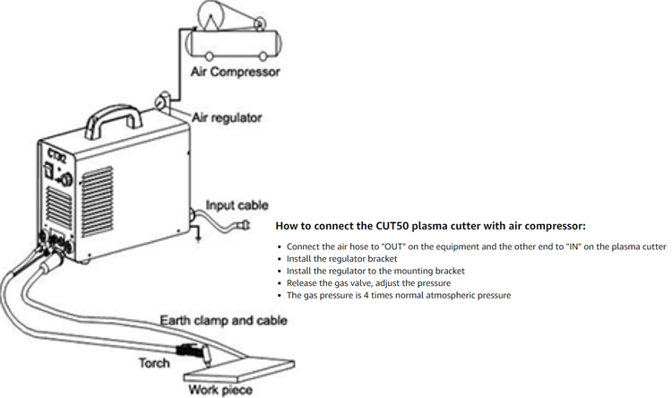Connection method of CUT40 plasma cutting machine and air compressor: