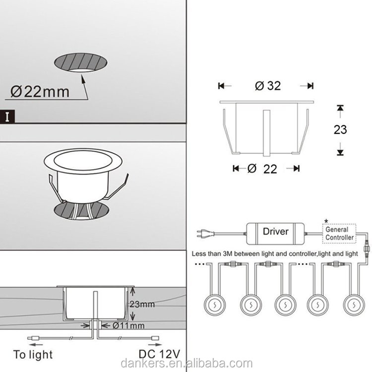 Lamp Dimensions: Diameter: 32mm (1.26"); Depth: 23mm (0.9"); Cutout: 30mm (1.18")