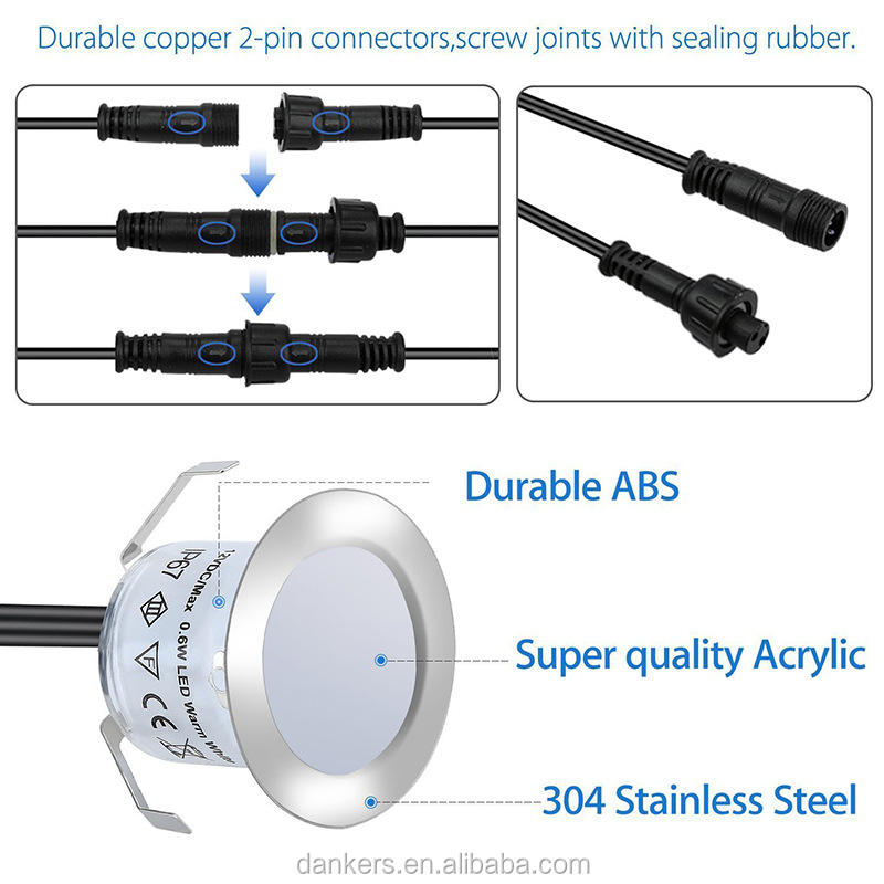 Suitable for indoor and outdoor decoration, can be installed in any place that can be drilled, such as the base of the kitchen, deck stairs, deck steps, patios, floors, eaves, swimming pools, walkways, kitchens, saunas, bathrooms, gardens, outdoor LED landscape lighting, ETC.