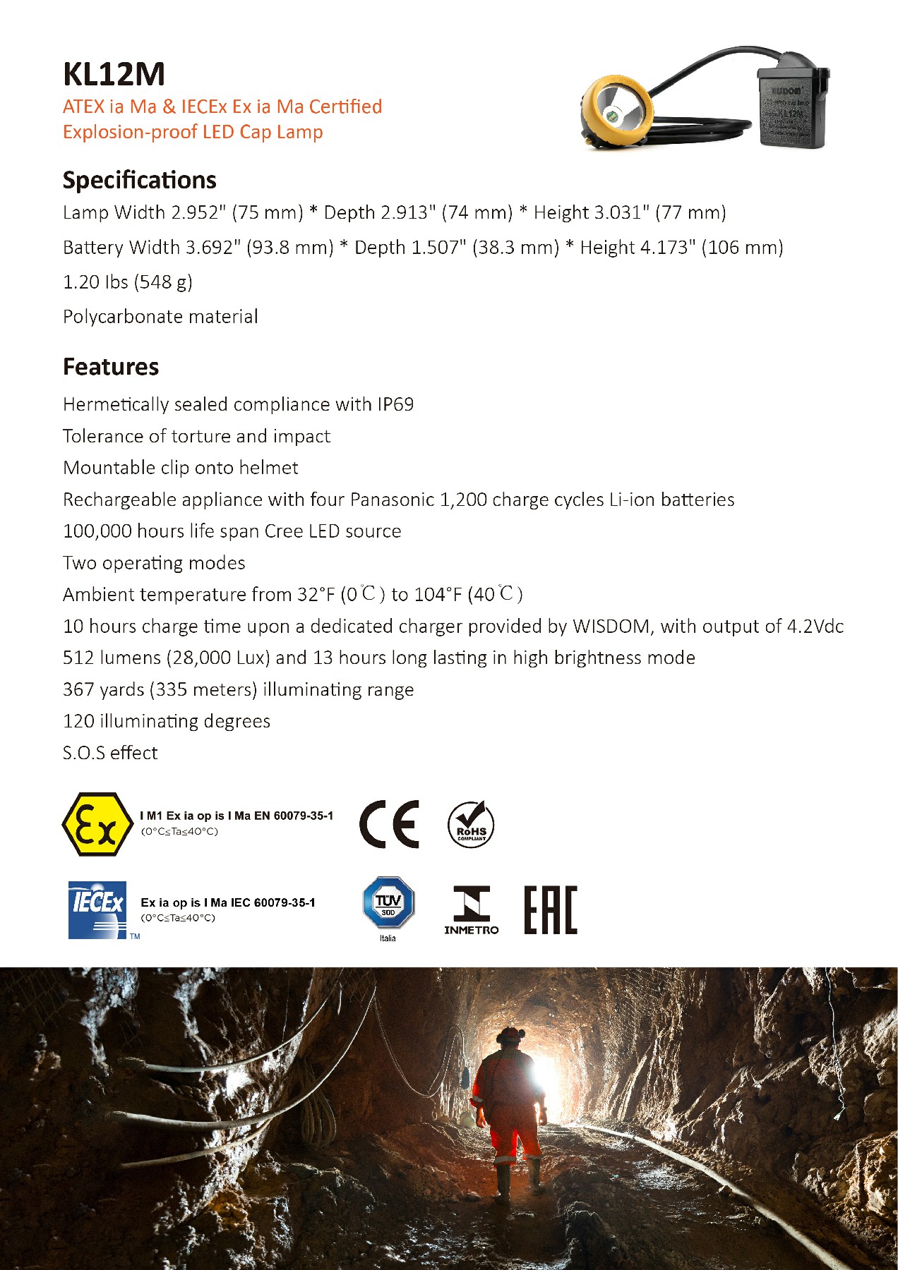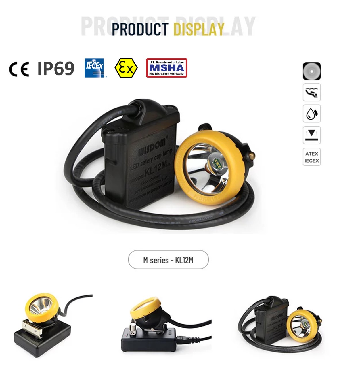 Rechargeable brightest led miner headlight lithium-ion battery 28000LUX helmet cap light KL12M portable led work light (WISDOM)