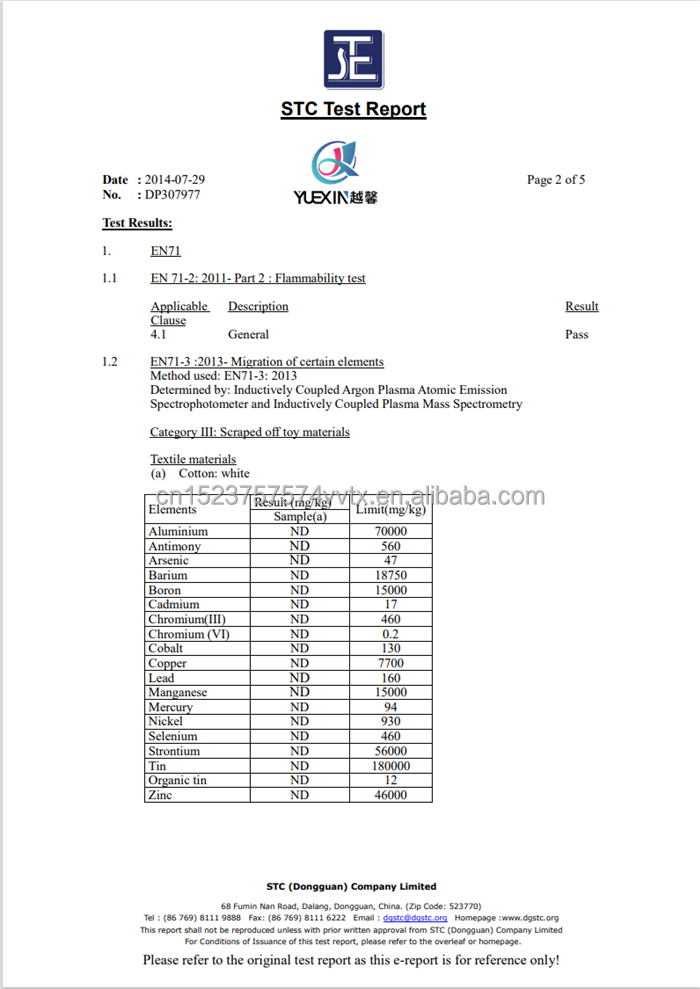 A12: We have been ISO 9001 certified since 2006. Most of our products are tested for harmful chemicals by SGS, Intertek and BV.