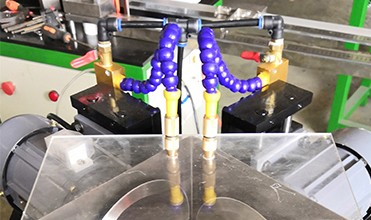 The automatic sprinkler device reduces the temperature of the circular knife, prolongs the life of the circular knife, and prevents high temperature from affecting the cutting effect of the gasket.