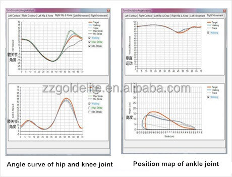 Viewpoint transformation (front/back/left/right) and specific parts can be played repeatedly, providing real-time analysis chart function, which can pass normal gait trajectory chart, hip/knee joint angle chart, ankle joint position chart gait.