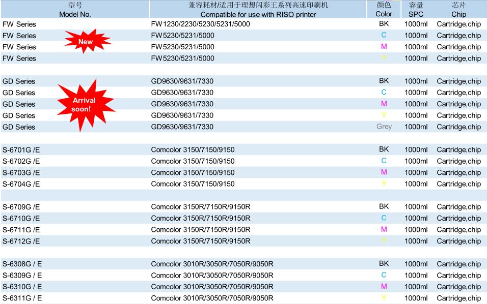 2. Color ink cartridges for Risos, Comcolor, HC, FW, GD color printers.