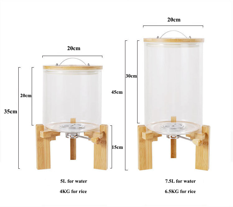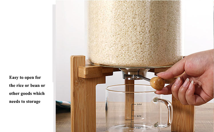 | Name | Hope design Glass Borosilicate Rice Dispenser Food Storage Container Box Jar with Bamboo Lid and Bamboo Base |