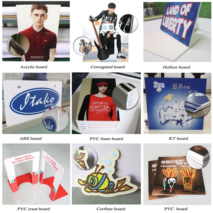 | Material | KT board, PVC foam board, corrugated board, plastic board, acrylic board, hollow board, Abs board, corrugated board, PVC board... |
