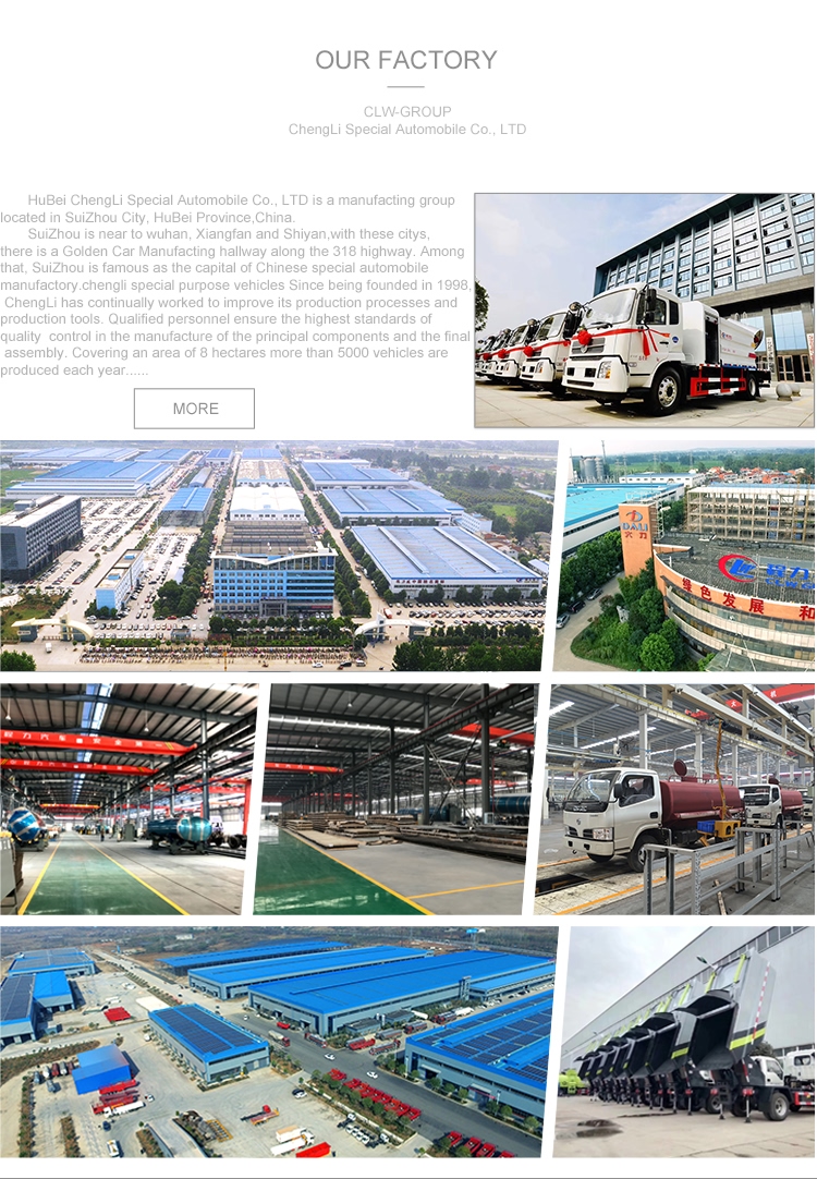Cheng Li Special Automobile Co., Ltd is an important part of Hubei Chengli Group, we are large scale special truck modification plant for DONGFENG, FOTON, SINOTRUK, JAC, JMC, ISUZU, and we are domestic well-known special trucks manufacturer for landscaping vehicles, petrochemical vehicles, municipal sanitation vehicles, pressure vessels. National product code: "CLW", government and enterprise procurement designated special vehicle supplier.