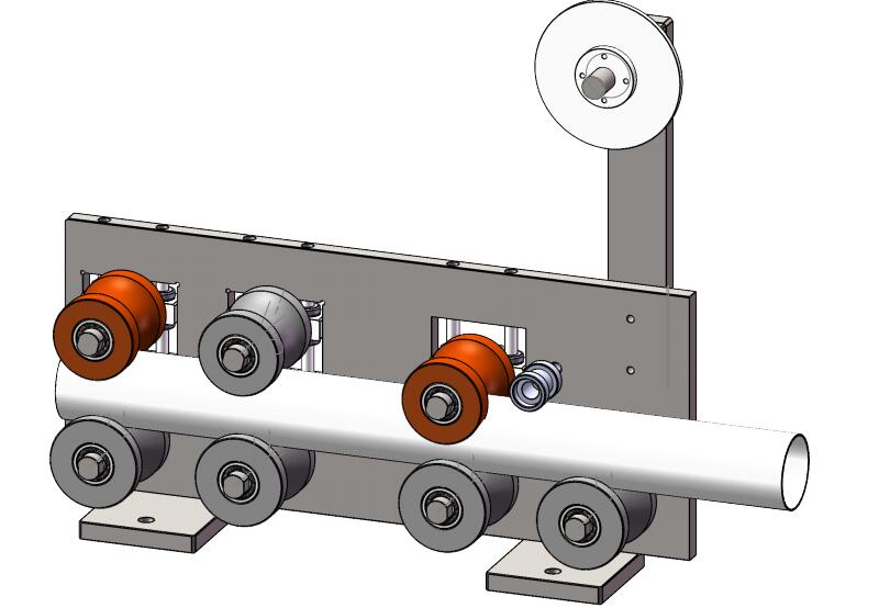 The tool is used for the production of roller shutters, sticking the tape on the pipe