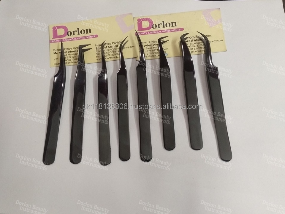 Straight Thin & Pointed Tweezers / Pro Straight Tweezers / Strong Elbow Tweezers / Half Elbow Tweezers / 105 Degree Angled Tweezers / 135 Degree Angled Tweezers / X-shaped Tweezers / A-shaped Tweezers / L-shaped Tweezers / Pointed Tweezers / Hook Tip Tweezers / Double curved tweezers, etc.