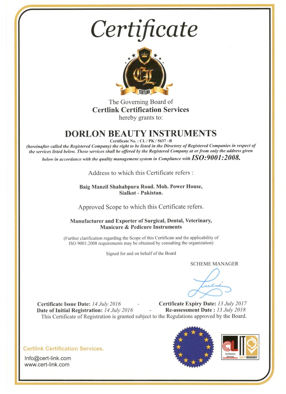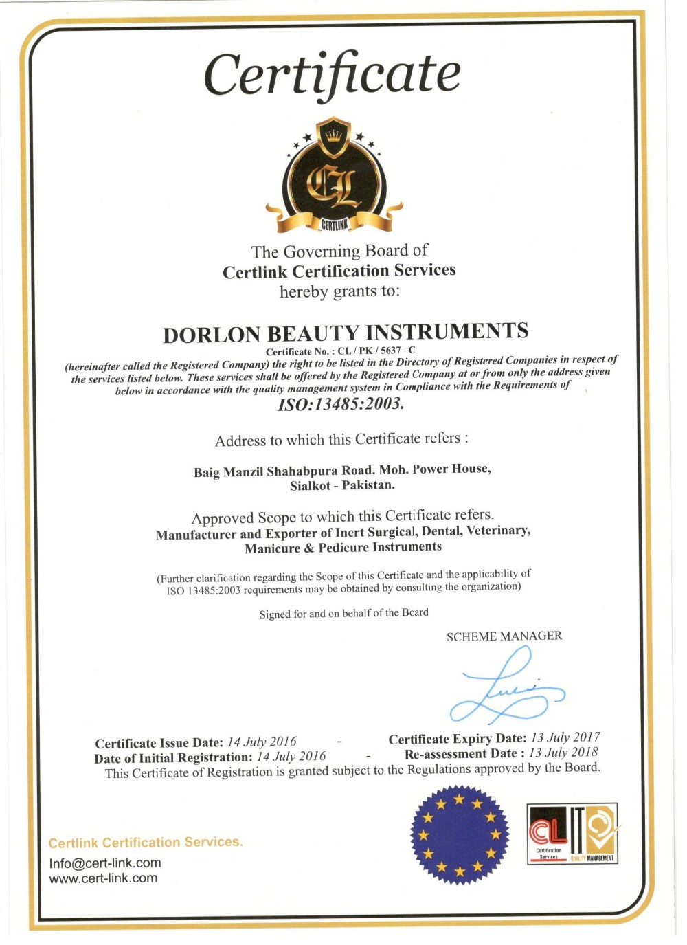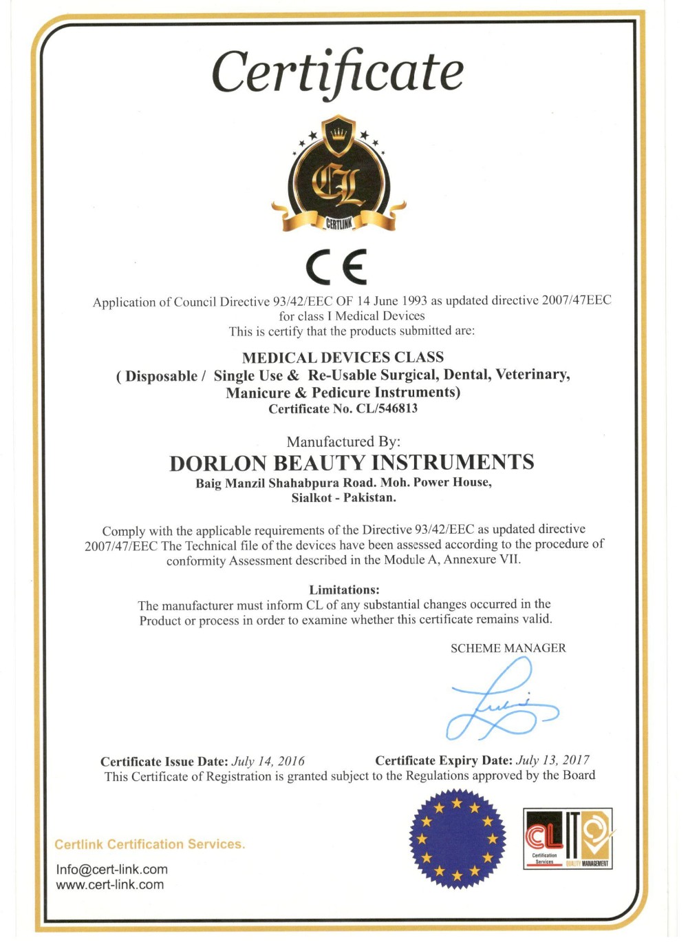ISO 9001:2008 ISO 13485:2003 DORLON CE certificate: