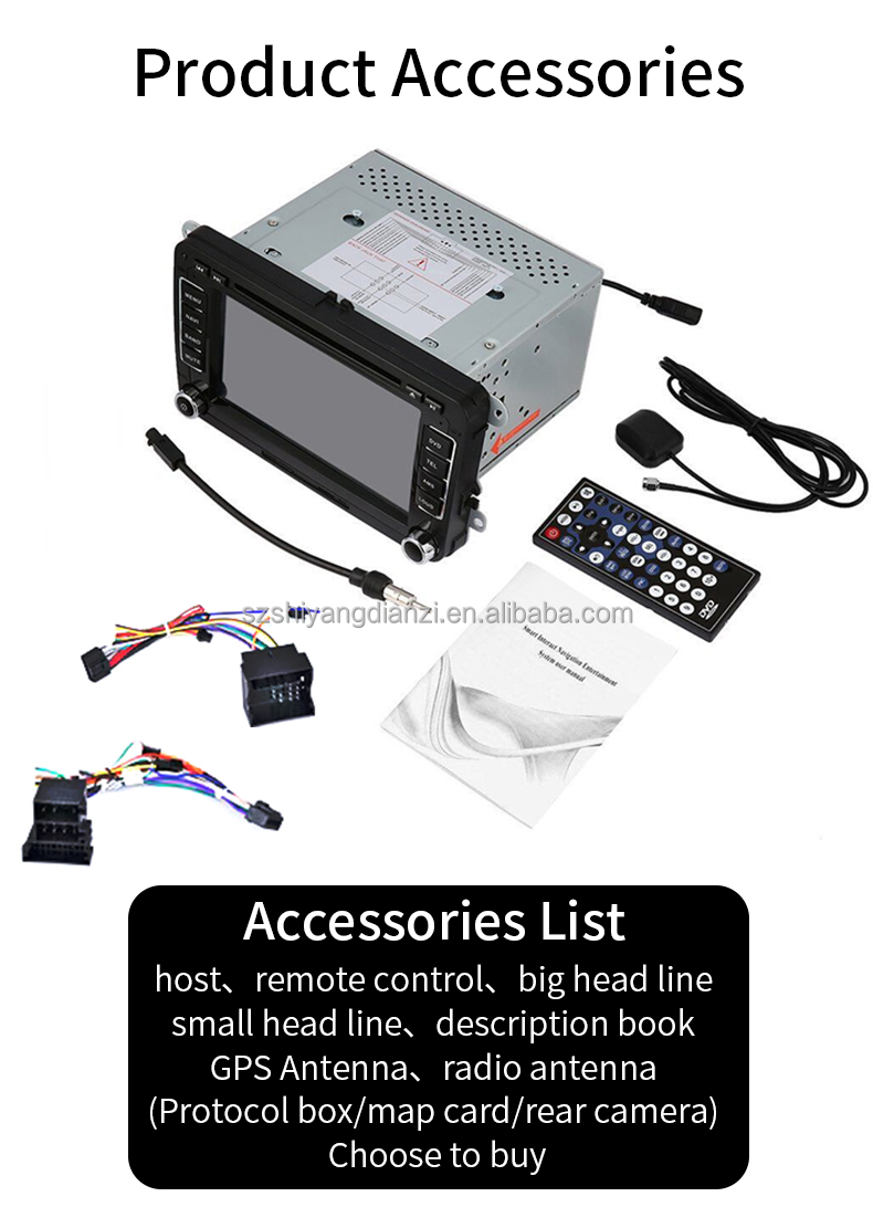 | Packaging Details: | Note: Due to strict customs inspection, most shipping companies do not support packages containing batteries. In order to allow you to receive the package quickly, we will remove the batteries from the remote control of the product. beg to be excused. Delivery parameters 1: 3 kg in a single package 2: 6 sets of standard packaging and 16 kg in a box (considering that there may be errors in size and weight, the size and weight data are for reference only) | Function: | Mirror Link, Bluetooth, MP3/MP4, Touch Screen, DVD/VCD, Photo Viewer, Others, Radio Tuner, Remote Control, Amplifier, Reversing Camera, Steering Wheel Control, Reversing Assist, Multimedia Support, Dual Mode Navigation System |