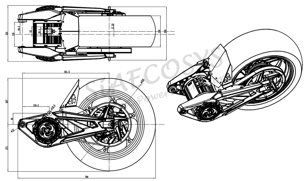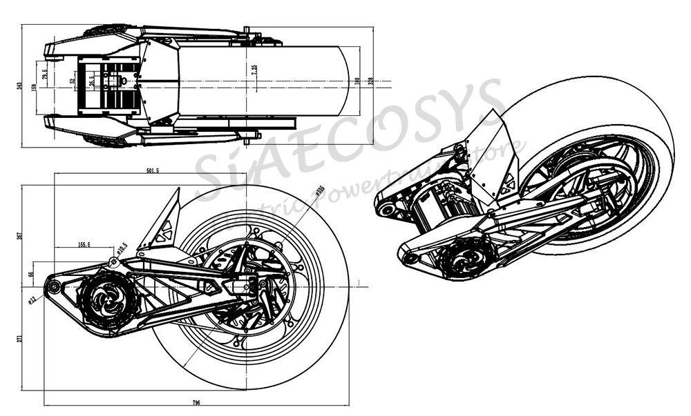 ·1 QS 14*6.0 inch 4000W mid-drive motor assembly with left/right fork (Does not include tires)