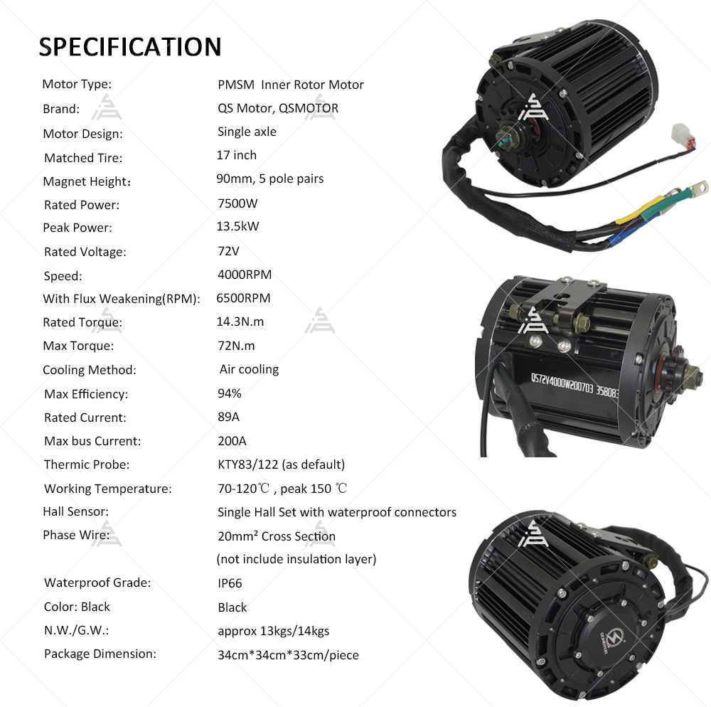 | No-load speed: | 3800rpm without field weakening, 6000RPM with field weakening | Rated voltage: | Default 72V |