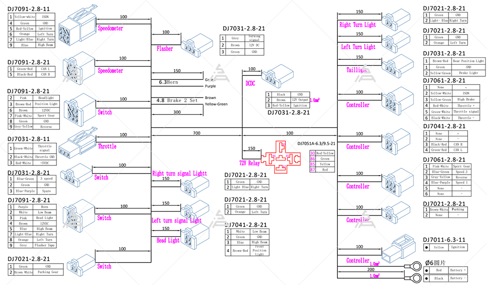 4. Suitable for vehicle wiring of EM50sp-EM150sp controller