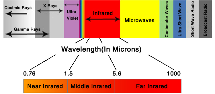 Infrared rays are divided into 3 segments according to wavelength measurement