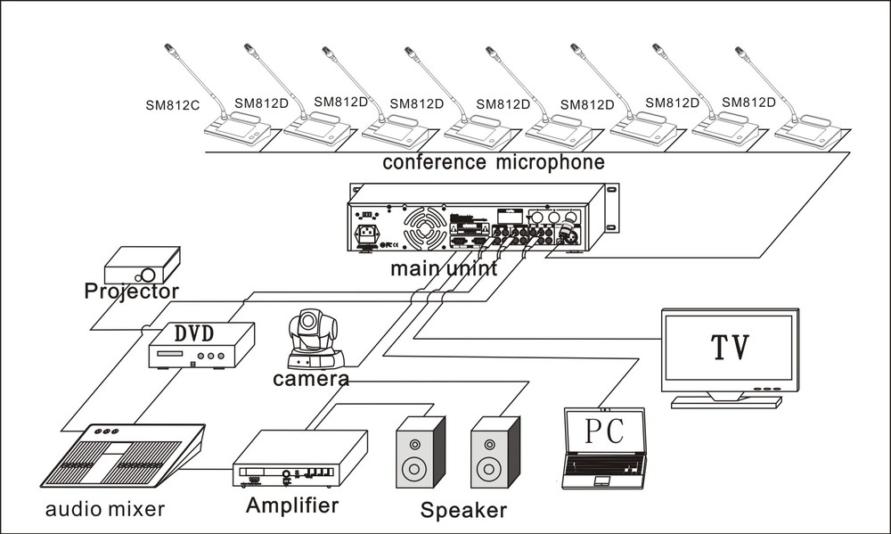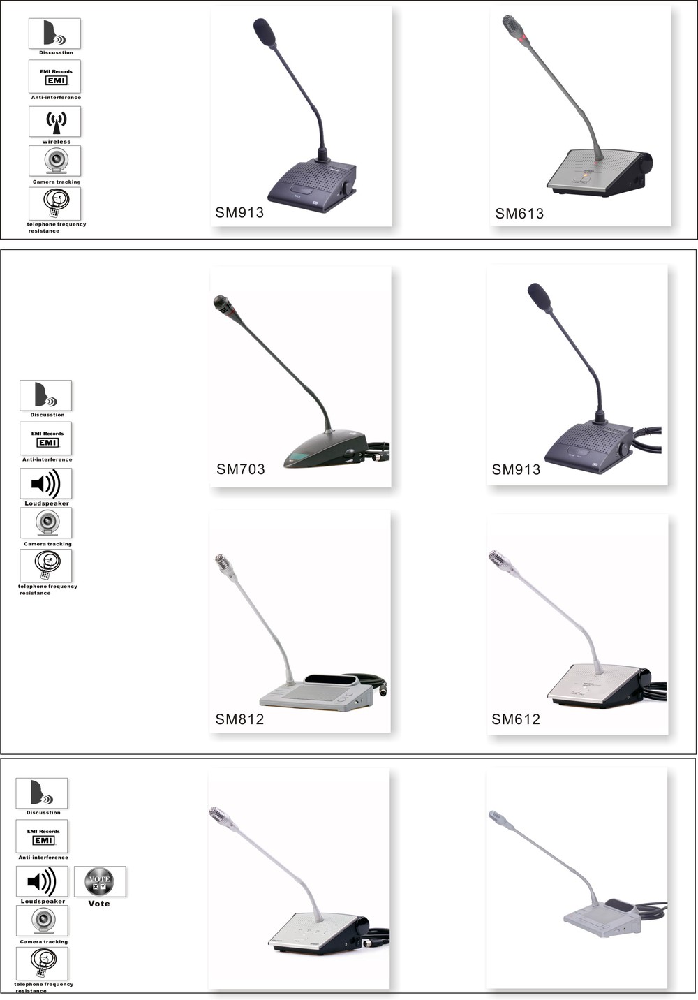 • Support 10 microphones, including chairman unit/co-chairman unit;