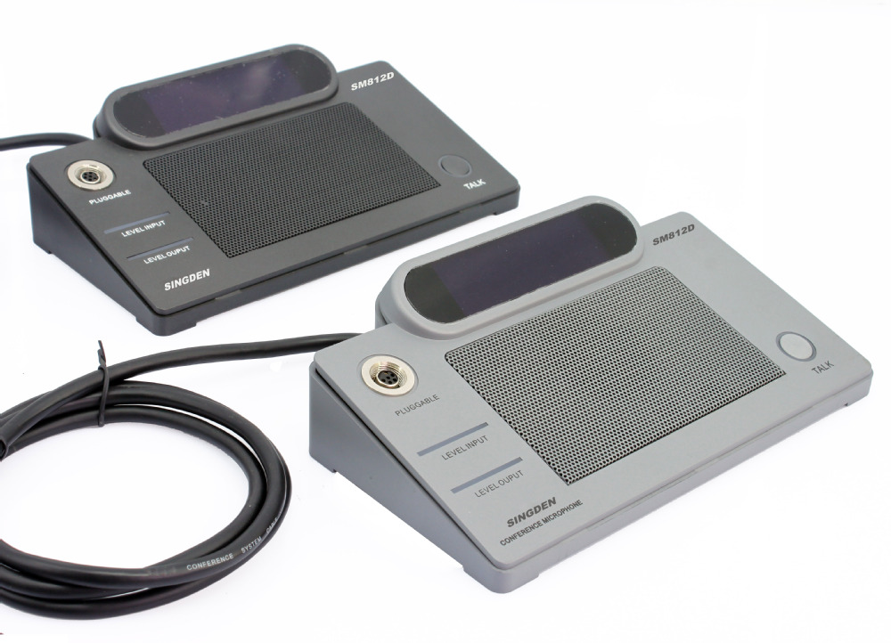 SM812C/SM812D conference microphone, a professional conference microphone developed by SINGDEN, with its unique digital processing and transmission technology, excellent sound performance, high reliability, advanced digital technology and audio technology help to fully integrate, suitable for various conference occasions , SM812C/ SM812D unique high sound pressure processing capability Conference microphone audio line adopts fully balanced design and unique masking technology, and has strong anti-interference ability of mobile phones in long-distance transmission. The microphone is placed on an 8030 LED display, which can display various status and information of the microphone in time, and supports visual operation.