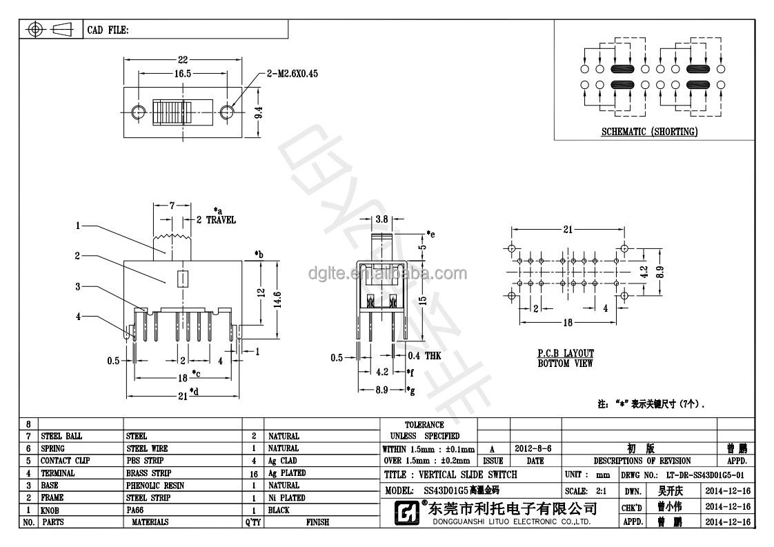 SS43D01G5 Widely used high quality fully electronic push button dip slide switch