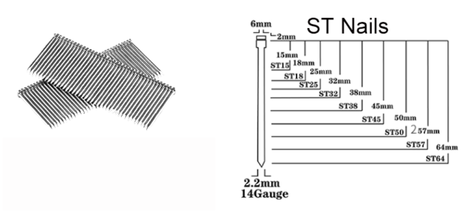 | Available nail sizes | ST18-ST25-ST32-ST38-ST45-ST45-ST50-ST57-ST64 |