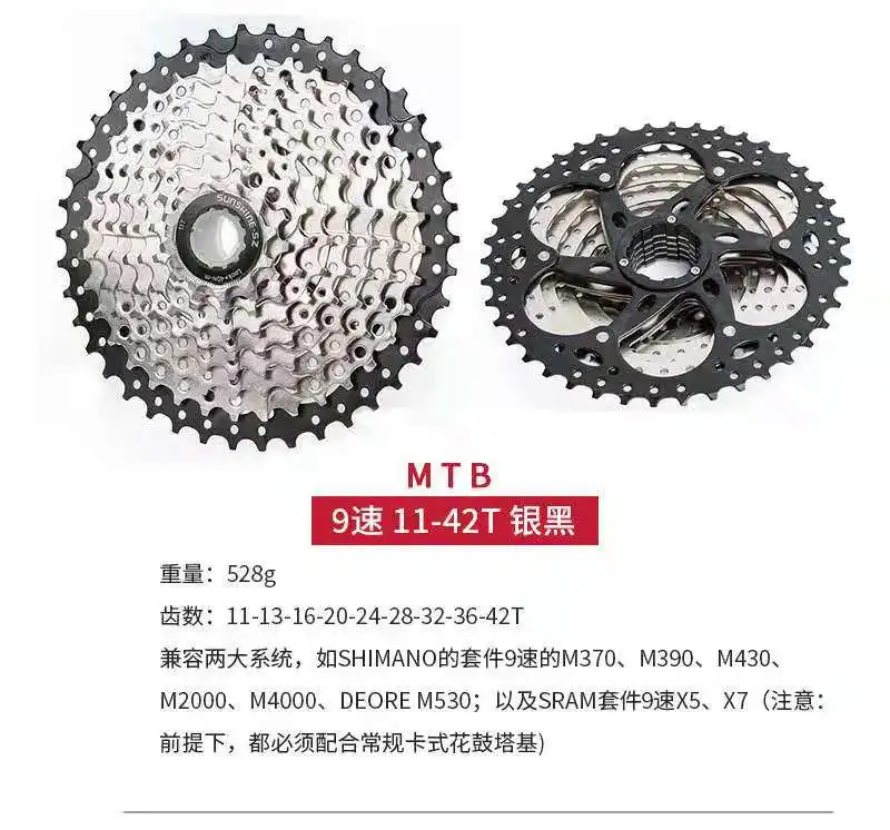 SUNSHINE 9 Speed Cassette 11-32T 11-36T 11-40T 11-42T Bike Cassette Bike Freewheel For Parts