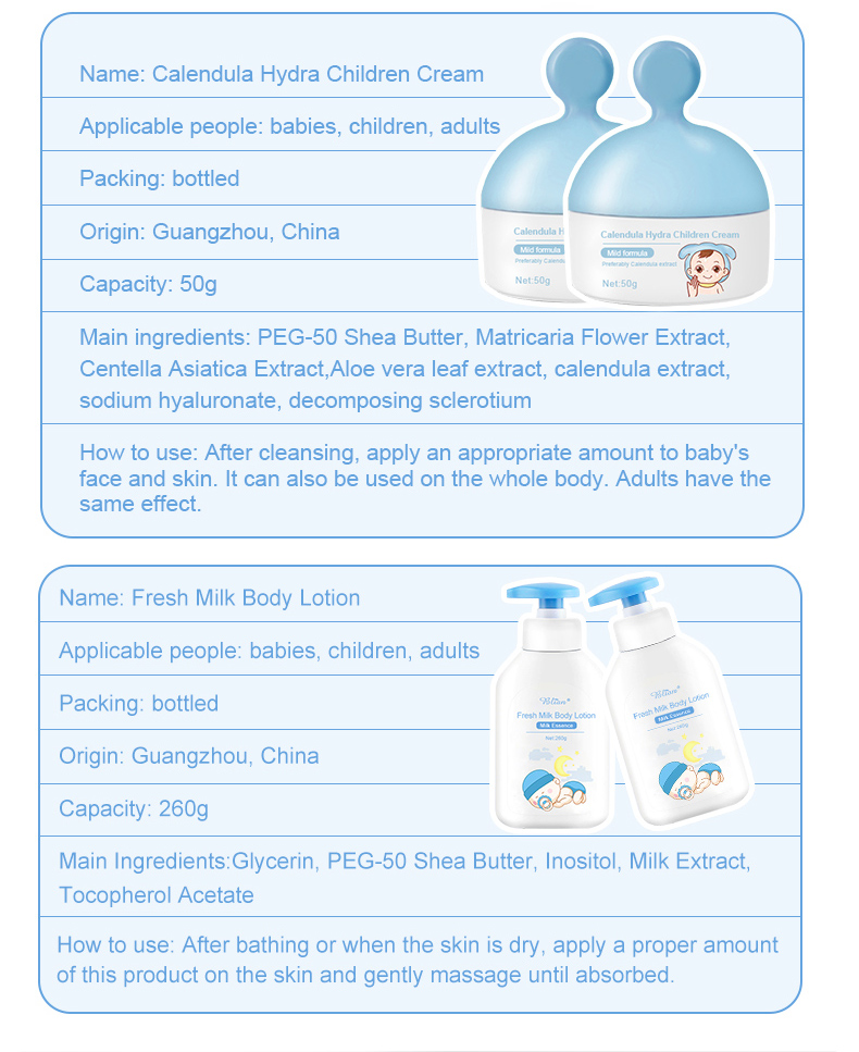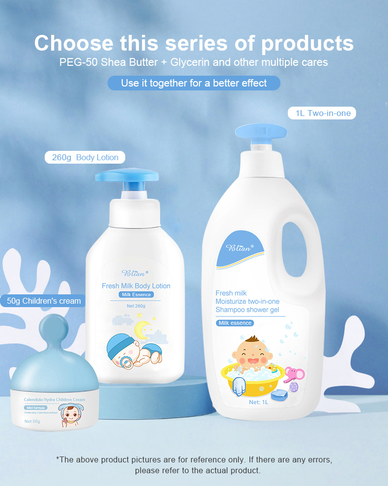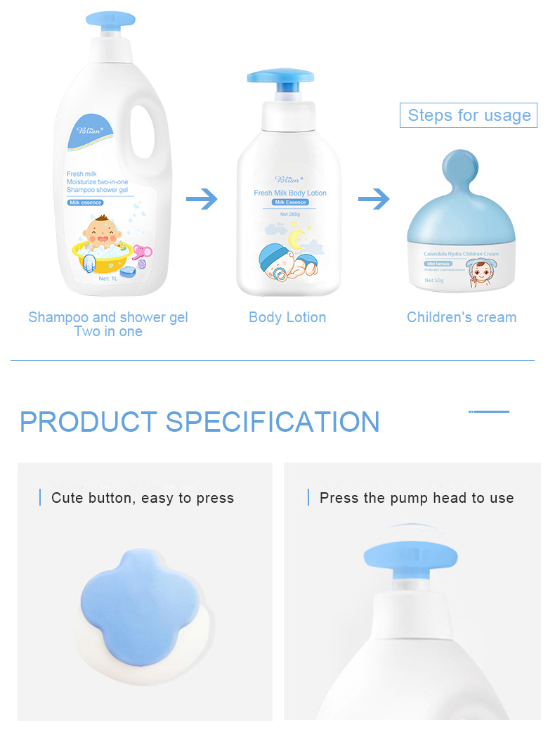 Safe Gentle Milk Baby Skincare Kids Creamy Body Wash Shampoo 2 in 1 Body Lotion Baby Bath Kit