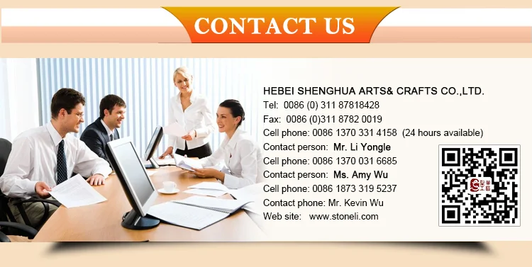 Hebei Shenghua Arts & Crafts Co., Ltd. We have our own factory, located in Dangcheng Town, Quyang County, covering an area of 80,000 square meters. We have more than 200 artisans working for us. Our workers are well-trained and experienced. Our annual output value is about 2 million US dollars. We also have an office in Shijiazhuang, which is more convenient for meeting customers and sending them to the airport.