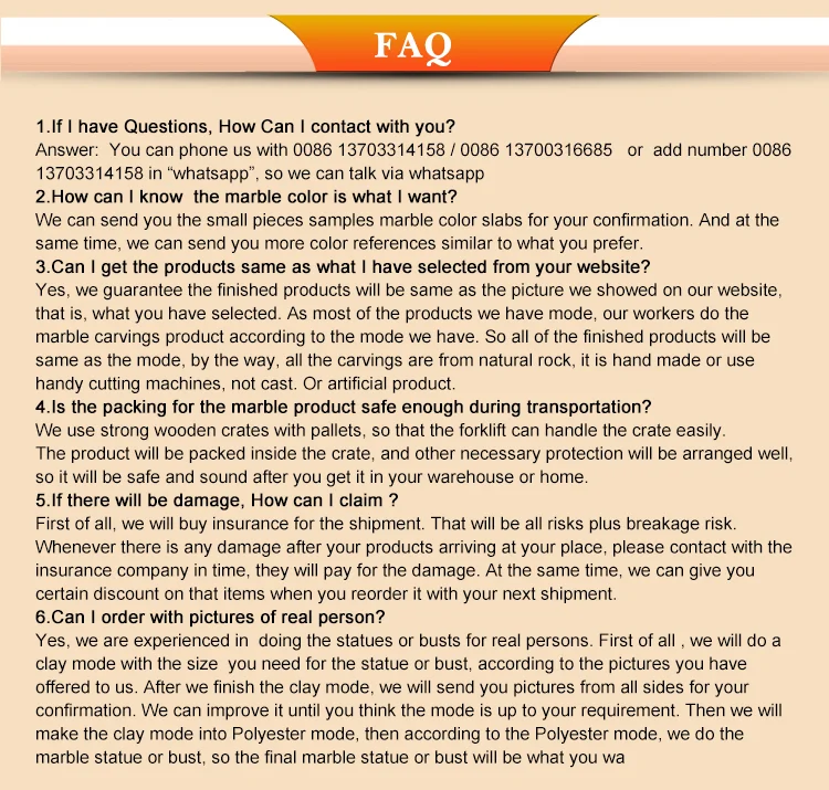 | Material: | marble | transportation: | Shipping (Tianjin Port). |