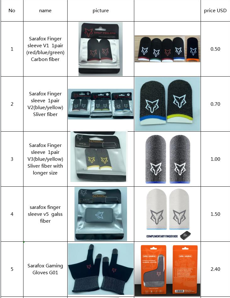 Package: 1 pair of Sarafox V1 Finger Sleeves