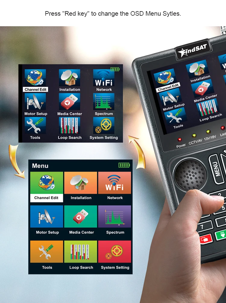 Satellite Finder Meter DVB-S2+CCTV+8MP AHD /CVI/TVI Receiver Spectrum Analyzer