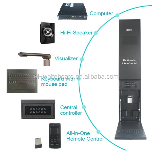 1. The system includes 82-inch infrared interactive whiteboard, i3 PC, 4G memory, 500G hard disk, 2*20W HiFi speakers, central control system, 5 million pixel visualizer, patented keyboard + mouse pad, and wireless microphone.