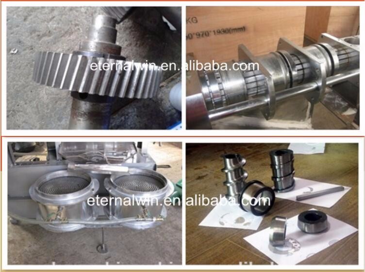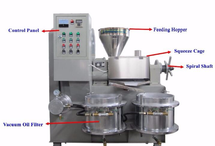 The machine consists of a feeder, a gear box, a pressing cage, a screw shaft and a machine base.